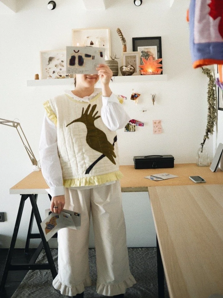 In my textile craft, I am constantly working on multiple custom orders along with a few larger collaborations. My work mainly includes hand-quilted jackets, vests, and tote bags. At the same time, I am following my “back to nature” path, which has always been at the heart of what I do. In addition to collecting all sorts of nature treasures, I recently started attending ornithology school. I am hoping—and dreaming—that alongside the textile craft I love, this new passion will take me somewhere exciting and unknown.